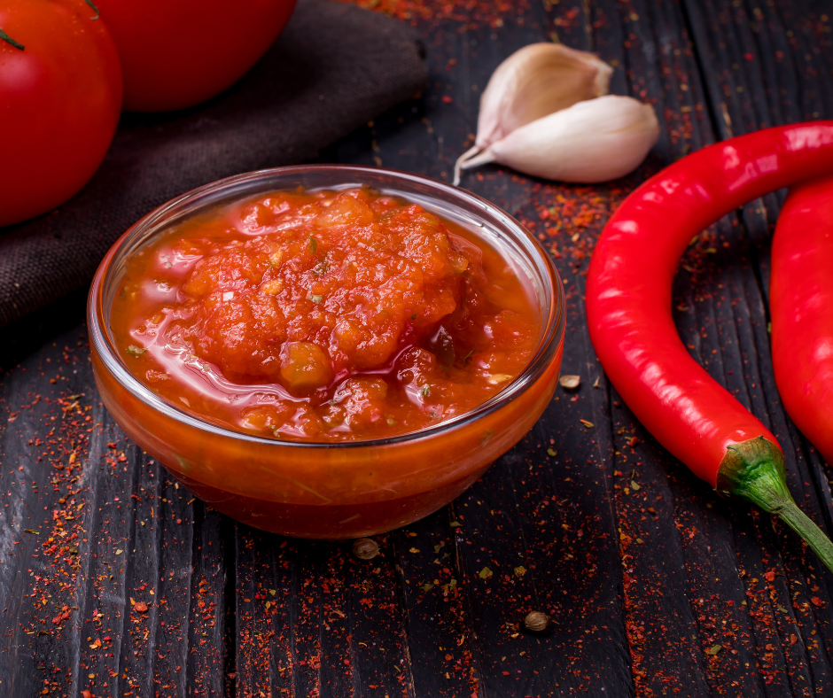 Koostisosad: paprika, tšillipipar, suhkur, küüslauk, vesi, äädikas, sool. Laktoosita, gluteenita, VEGAN, E-vaba.