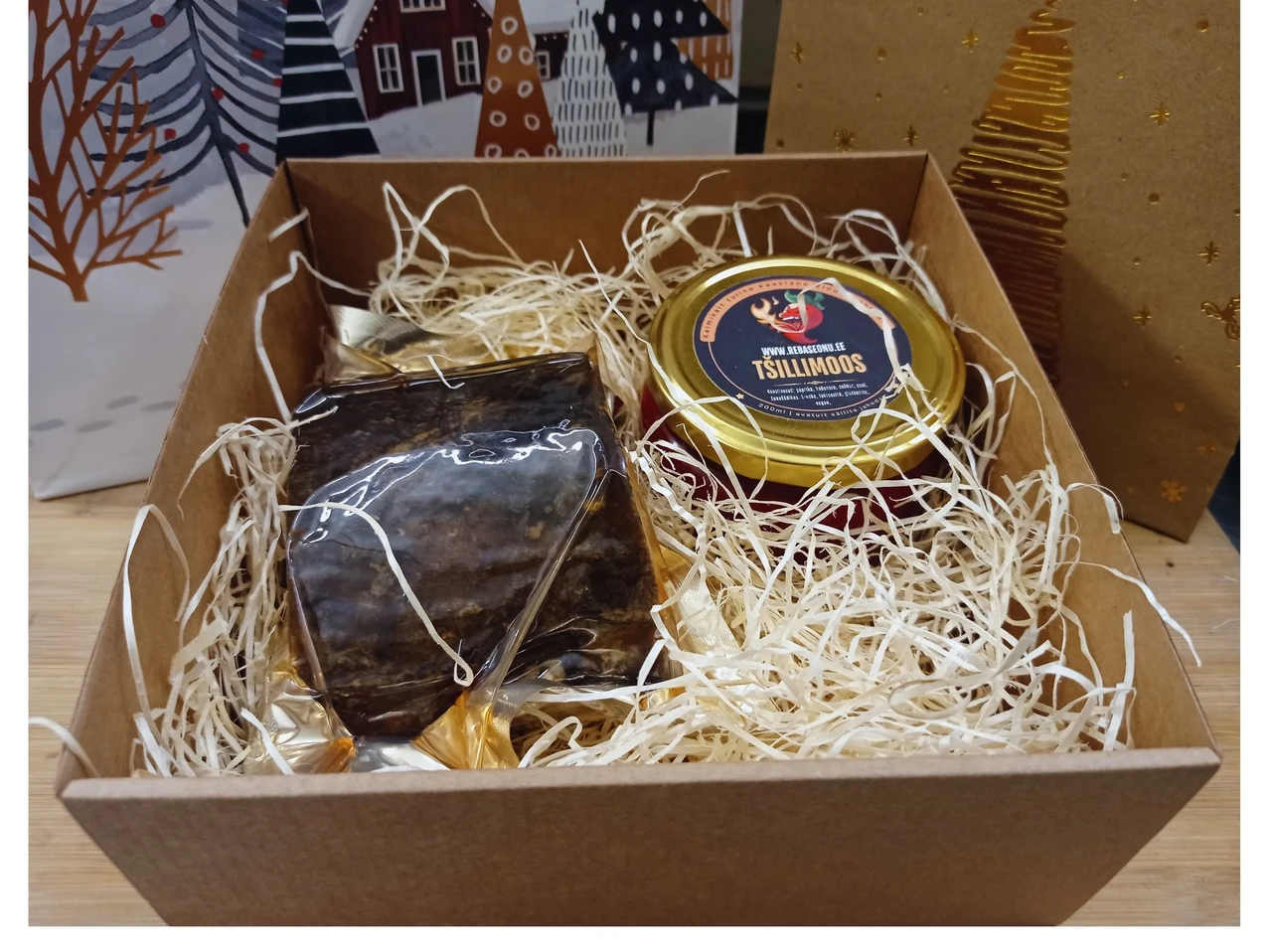 Teinekord on kingitusega nii, et pikka juttu ei olegi vaja. Väike aga maitsev kinkepakk sisaldab 500g maasuitsuliha (kas peekon, filee või kamaraga filee) tükki ja 200ml tšillimoosi. Paras ports, et hambad ei põruks ja maitsemeeled üles ärkaks.