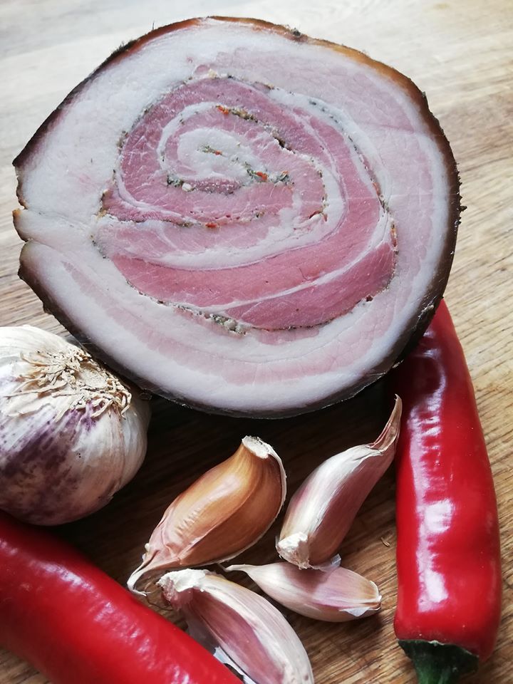 Rebaseonu KÜÜSLAUGURULL on peekonist valmistatud ja küüslaugu-ürdiseguga maitsestatud rulltoode. Imeline võileival või niisama maiustamiseks.